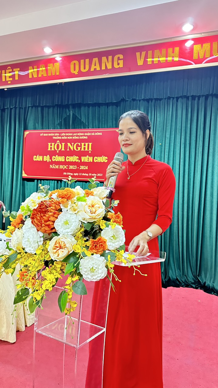 Thực hiện CV số 540/PGDĐT ngày 15/9/2023 của phòng GD và ĐT quận Hà Đông về tổ chức Hội nghị cán bộ, công chức, viên chức ngành GDĐT quận Hà Đông năm học 2023-2024. Ngày 12/10/2023, trường mầm non Đồng Dương long trọng tổ chức Hội nghị Cán bộ công chức, viên chức năm học 2023-2024. Hội nghị diễn ra trong bầu không khí vui tươi, dân chủ và đầy trách nhiệm.